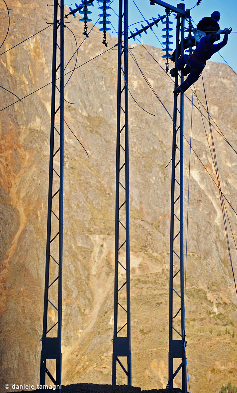 ... Roberto Cotroneo emphasizes how Kami remains one of the poorest places in Bolivia. The mine always requires terrible efforts to get tungsten out of the bowels of the mountain, using obsolete techniques, since technical improvements have never been carried out. Daniele tells the reader about his experience in a few words and many images: 'Portraying people I found the faces described by Scianna and listened to heartbreaking stories. When I photographed three pylons having as a background the barren mountain in which some workers were hanging up at work, the image overlapped with the one of Golgotha [...] Despite this harsh reality, I perceived in the people's eyes a great dignity and signs of hope for a real improvement in living conditions. I tried to convey this positivity.”